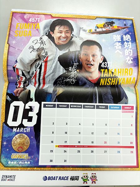 12月6日(土)および12月7日(日)「スポーツ報知杯」2日目・3日目に、2026ボートレーサーカレンダー配付を行います。 開門よりイベントホール横の引換ブースにて先着1,000名様に配布いたします。 皆様のご来場お待ちしております。