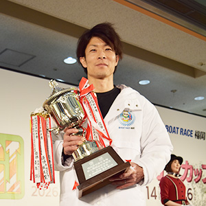 サマータイムで開催されてきたボートレース福岡の「福岡県知事杯争奪 福岡都市圏開設36周年記念競走」。15日に行われた優勝戦は、三苫晃幸(福岡39歳)が自身4回目の優勝を飾った。スタート練習から3コースカドを選択していた峰重力也が、スタート展示も本番も3コースカドに持ち出して枠なりの2対4。スリットはやや中へこみの隊形となり、伸び足で脅威だった峰重と竹下大樹が遅れたのは三苫にとって好都合。自身もコンマ18と速い踏み込みではなかったが、全速のスタートを決めて1マークを先制。果敢に握ってきた峰重をしっかりと受け止めると、1周バックで早くも独走態勢へ。デビューした地でのうれしい福岡初Vにファンからは大きな声援が飛んでいた。また、峰重と常住蓮による2番手争いは、峰重が終始優勢に運んでいたが、常住が旋回力の違いを見せつける形で猛追。3周1マークで完全に峰重をとらえ、最終マークで逆転に成功した。