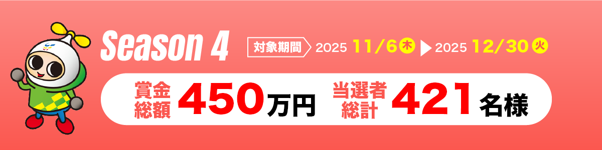 ※本キャンペーンの内容、賞⾦、サイト仕様、スケジュール等は予告なく変更する場合があります。
