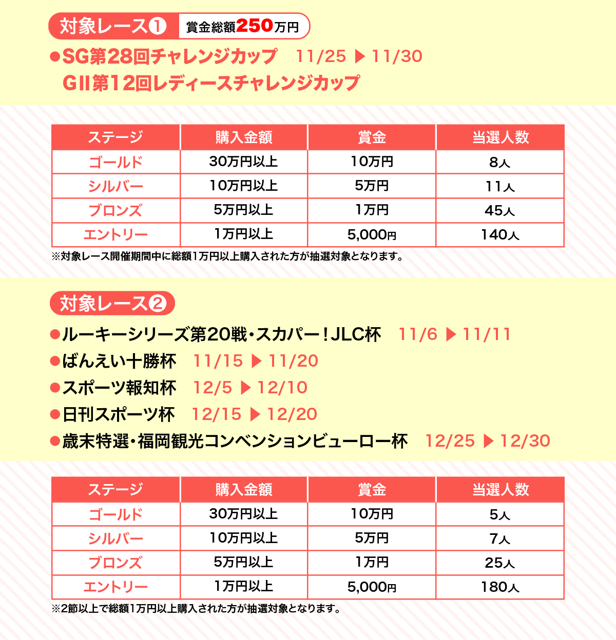 賞⾦振込までの間に銀行口座の解約、テレボート会員を退会された場合、賞⾦獲得資格を失効とします。