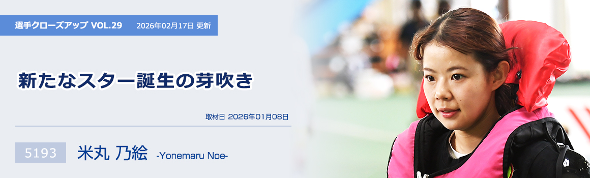 また一人福岡からスターが誕生しようとしている。その名は米丸乃絵。2026前期勝率は自己最高勝率となる6.61をマークしてA1級に初昇格。2026年のトップルーキーに福岡支部から唯一選出されて、今後はSG、GⅠ戦線での活躍も期待されるが、ここまでの道のりはそこまで簡単なものではなかった。