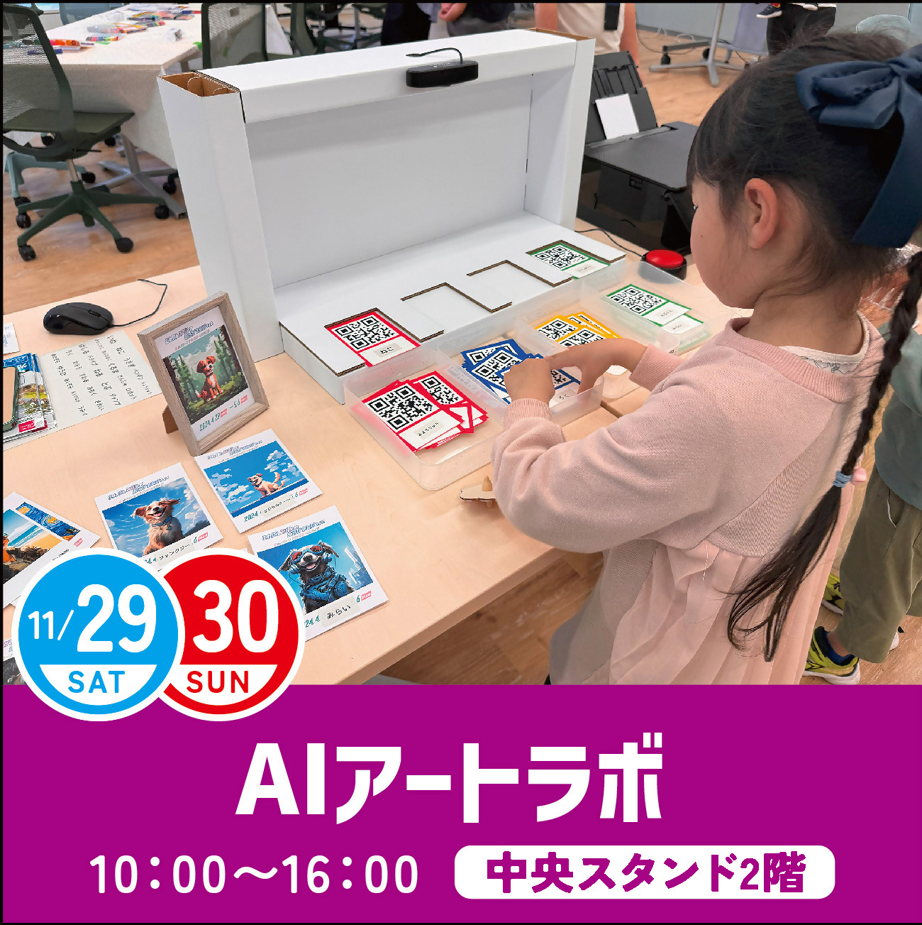 4つのキーワードを組み合わせてAIアートを生成。完成したAIアートはポストカードにしてプレゼント! 日程:11月29日(土曜日)、30日(日曜日) 場所:ボートレース福岡 中央スタンド2階休憩スペース 時間:10:00~16:00 参加費:無料 対象:小学生以下のお子さま