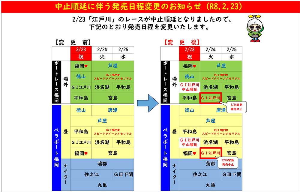 中止順延に伴う発売日程の変更について