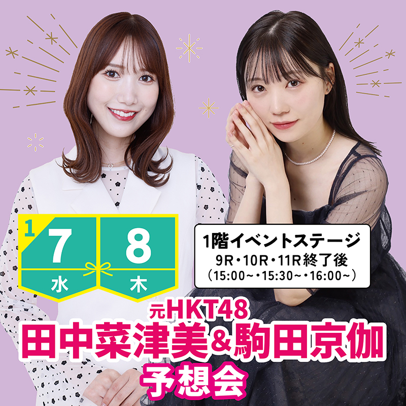 元HKT48「田中菜津美」「駒田京伽」が優勝戦日の舟券予想会を実施! 日程:1月7日(水曜日)・8日(木曜日) 場所:ボートレース福岡 イベントステージ 時間:9レース、10レース、11レース終了後 (午後3時00分頃、午後3時30分頃、午後4時00分頃)