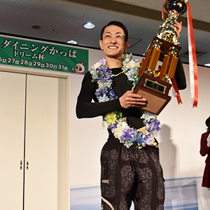 ボートレース福岡の現行モーター最終戦となった「和風ダイニングかっぱ ドリーム杯」は、鈴木孝明(埼玉27歳)のデビュー初優勝で幕を閉じた。進入は枠なりの3対3。スリット隊形は1~4枠勢が1艇身ほどでそろい、外枠勢はやや慎重なスタートに。1コースからトップスタートの太田和美が一目散に逃走態勢を築くと、果敢に握ってきた西川拓利の攻めを受け止めて首位浮上。鈴木の2コース差しも届かず。このまま太田が圧勝するかと思われたが、続く2マークではハレーションでターンマークが見えにくかったのか、少しスピード不足の旋回に。その隙を見逃さなかったのが、2艇身後ろから逆転を狙っていた鈴木。鋭い差しハンドルから2周ホームで太田をとらえた。そのまま2周1マークを先取りし、太田の攻めをしっかりと封じてリードを広げた。また、3着争いは2マークで内を突いてきた萩原秀人を冷静に回して差し交わした西川が確保した。